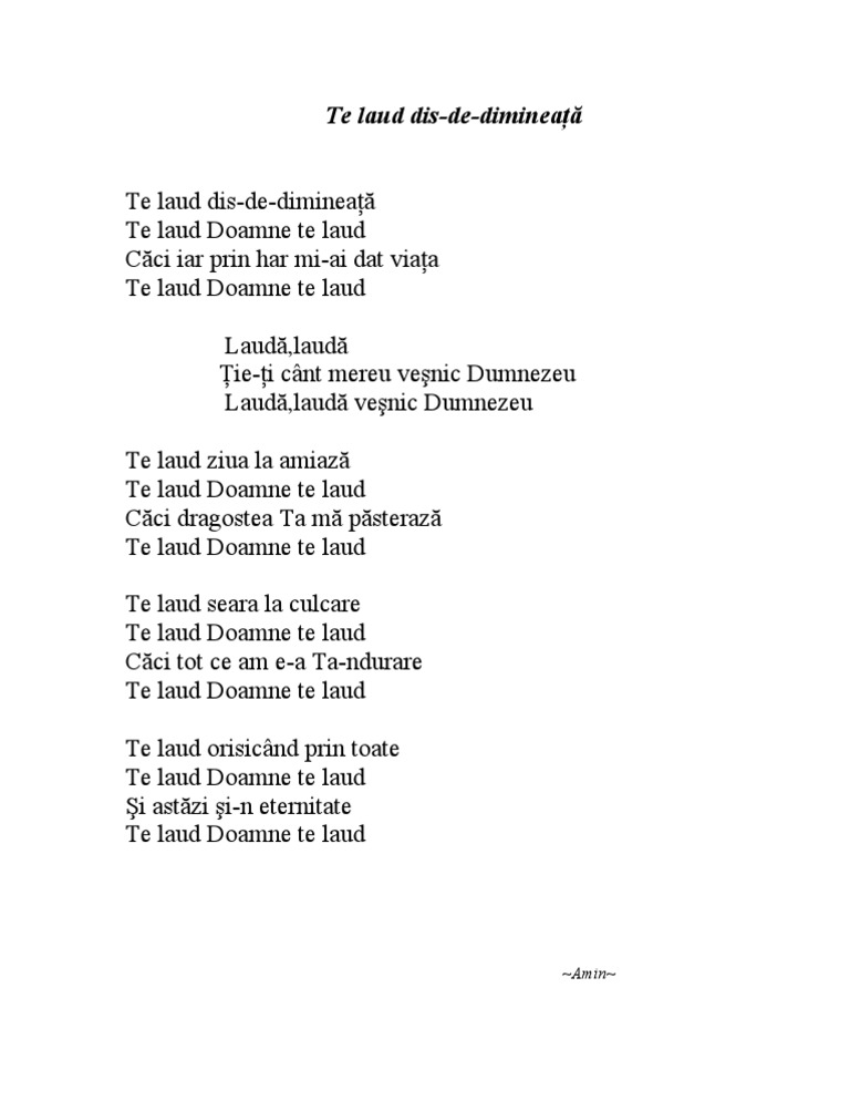 Dis de dimineata. In pamant pustiu si neumblat si fara de apa. Cu ziua n cap foarte devreme. Peste zi în cursul zilei ziua. Buzele mele te vor lauda.