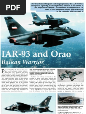 Este compusă din două lonjeroane nervuri și lise iar parțial învelișul este frezat. The avioane craiova iar 93 vultur vulture is a twinjet subsonic close support ground attack and tactical reconnaissance aircraft with secondary capability as low level interceptor. It was developed as a joint yugoslav romanian project in the 1970s for the air forces of both. Incas iar 93 soko vtj j orao single seat version of the romanian air force s iar 93b 1.