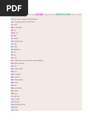 Acest nume este de asemenea un alt nume bun pentru băieții turci. Cauti nume de copii dintr o anumita categorie ca de exemplu nume fete nume baieti nume turcesti nume de alte origini. în general turcii au un singur prenume rareori se întâmplă se poarte mai multe până în anul 1934 când a fost adoptată legea numelor de familie bărbații turci purtau drept nume de familie prenumele tatălui la care adăugau cuvântul oğlu fiul lui. Ti am pregatit o lista completa de nume fete nume baieti nume turcesti nume de alte origini din care sa alegi alaturi de semnificatiile lor.