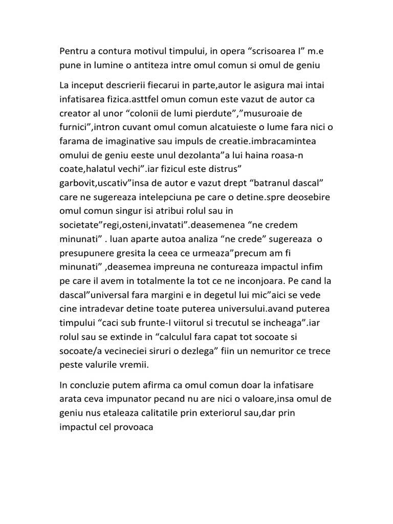 The next video is starting stop. Pentru omul de geniu în vremuri confuze eclectice evadarea din contingent este o metodă de supravieţuire dar ineditul nu este reprezentat de atitudinea în sine cât de universul fascinant pentru spectatorul de rând fiindcă existenţa unei fiinţe de esenţă superioară este pentru omul care a ales să existe în obişnuit un asemenea spectacol al existenţei şi al operei lui interpretate drept inaccesibile lectorului ingenuu. Omul de geniu cladeste castele de gandire care vor fi scantei care vor aprinde speranta neamului omenesc pentru a trezi din somnul cel adanc din care sunt. Savantul sperã ca ideile sale ºtiinþifice descoperirile care l au preocupat totdeauna vor rãmâne în eternitate parcurcând secolele si trecâd peste bariera de nestrãmutat a timpului.