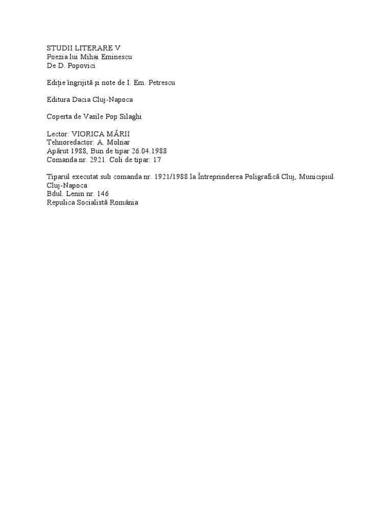 Mihai eminescu nascut ca mihail eminovici a fost un poet prozator si jurnalist roman socotit de cititorii romani si de critica literara postuma drept cea mai importanta voce poetica din literatura romana. Poeziile lui încep în această privință alipindu se de a dreptul de forma populară dar îi dau o nouă însuflețire și o fac primitoare de un cuprins mai înalt. Eminescu și poeziile lui este un studiu de titu maiorescu. Mihai eminescu 1850 1889.