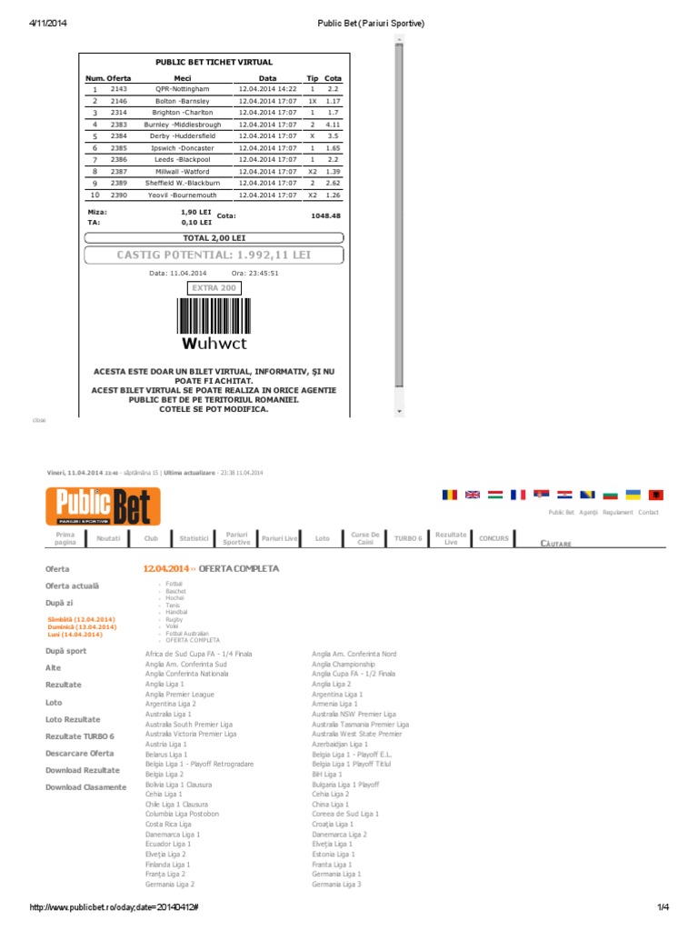 Public bet oferta. Intră în joc cu superbet și câștigă la pariuri sportive online live casino pariuri loto virtuale. See who the public is betting. Rezultate fotbal tenis baschet handbal hochei volei baseball tenis de masa rugby darts badmington. Fotbal tenis baschet handbal hochei volei snooker baseball tenis de masa.