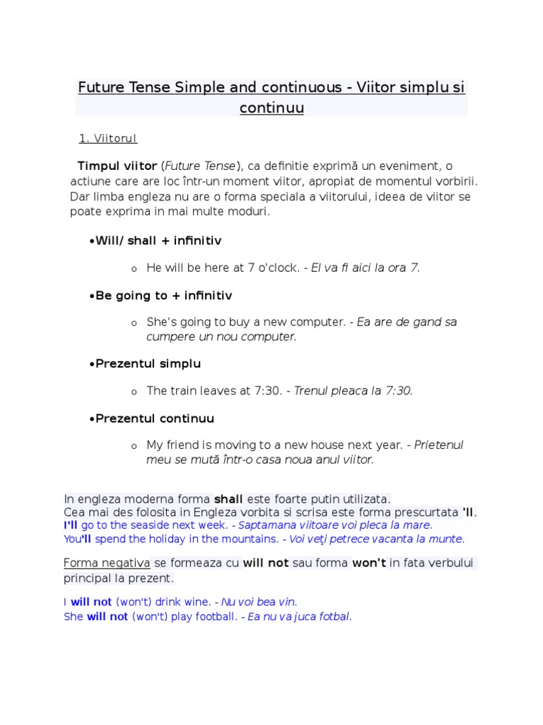 Viitorul in engleza. S will not won t verbul la infinitiv. Reverso context oferă traducere în context din română în engleză pentru viitorul cu exemple. Will shall infinitiv. Adverbe folosite cu simple future tense.